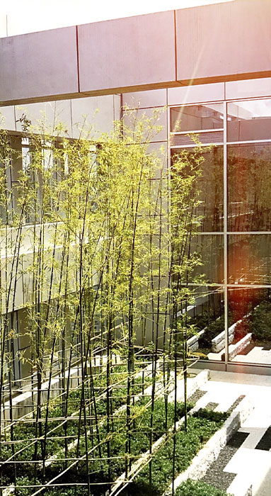 蓝天、白云、翠竹及碎石,给办公气息带进一抹舒心