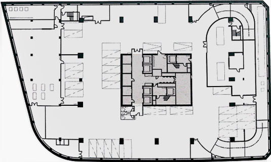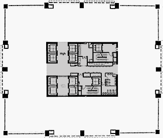 分高低区,设有8部客梯、2部货梯,每层设独立茶水间